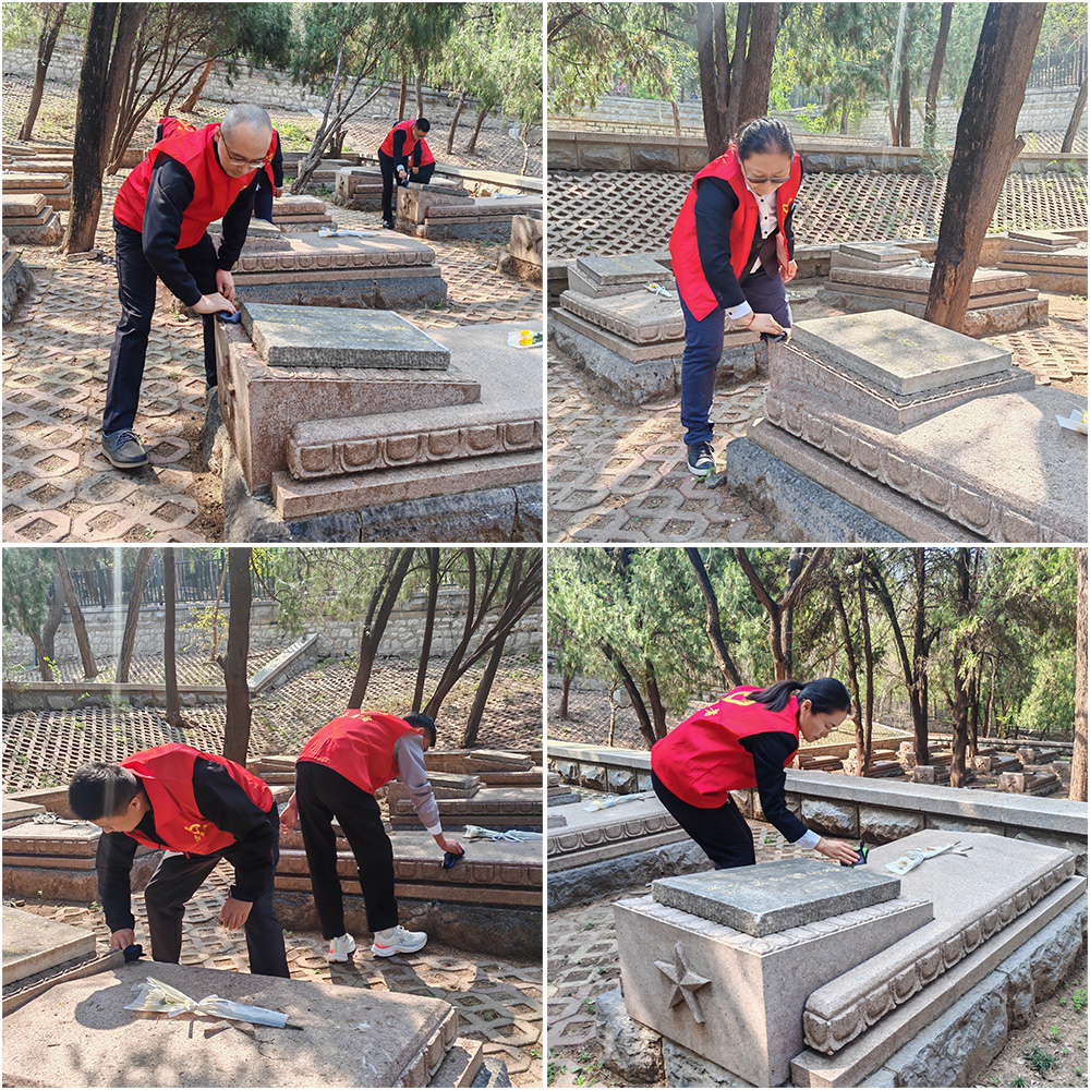 祭扫结束后,全体党员前往墓区,在讲解员的引导下聆听济南战役英烈事迹,深刻感悟先烈们坚守理想、无畏牺牲的崇高精神,深刻认识革命胜利的来之不易。随后,全体人员依次缓步绕行烈士墓,手持鲜花敬献先烈。之后,大家开展志愿服务,以质朴的行动细致擦拭墓碑、认真清理园区环境,以务实之举践行初心使命。